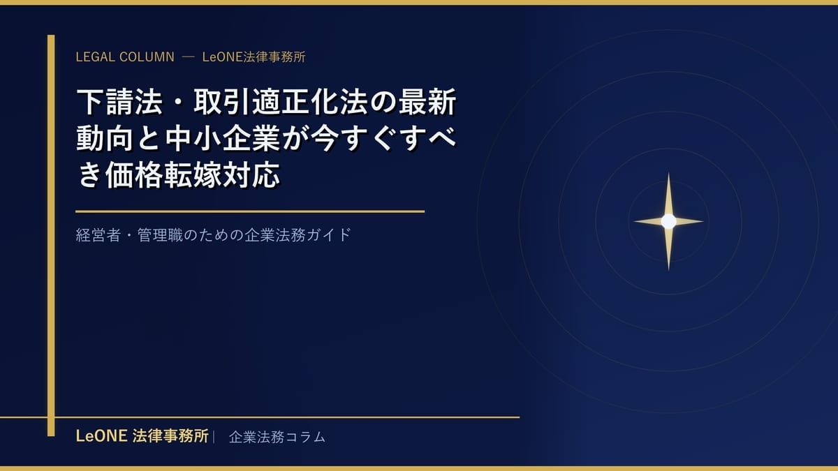 近年、原材料費や人件費の高騰が続く中で、中小企業が直面する最大の経営課題のひとつが「コストを取引価格に反映できない」という問題です。いわゆる価格転嫁の問題は、経営を圧迫するだけでなく、法的リスクをも生じさせます。