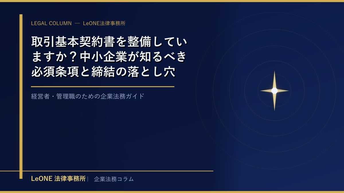 取引基本契約書を整備しておくことで、「言った・言わない」のトラブルを防ぎ、万一紛争になった場合も自社の立場を守ることができます。特に複数の取引先と継続的に商品・サービスのやり取りをする中小企業にとって、基本契約書の整備は経営リスク管理の基本中の基本といえます。
