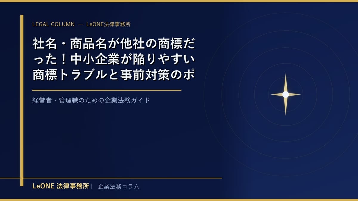 本コラムでは、企業法務を専門とする弁護士の立場から、中小企業が陥りやすい商標トラブルのパターンと、今すぐ取り組むべき実務的な対策ポイントをわかりやすく解説します。