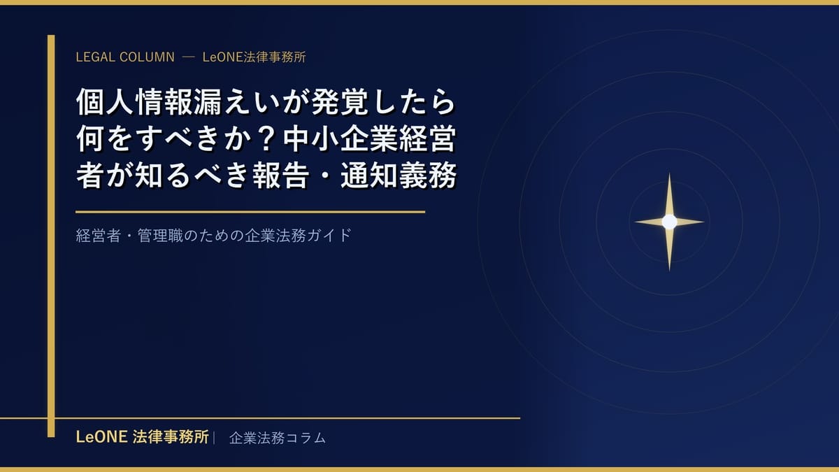 もし「自社の対応が適切かどうか不安」「実際に漏えいが起きてしまい何をすべきかわからない」という状況であれば、まずは企業法務を専門とする弁護士に相談することを強くお勧めします。初動対応を誤ると被害が拡大するだけでなく、法的リスクも高まります。早期の相談が、企業と顧客を守る最善の手段です。